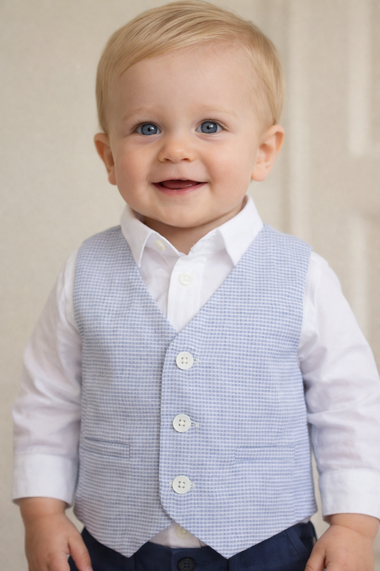 Blue Checked Linen Vest