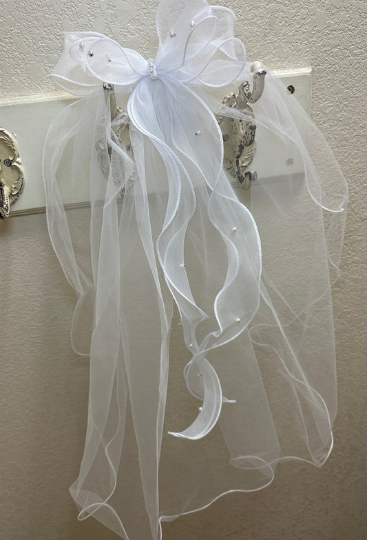Pearl Rhinestone Tulle Bow Veil