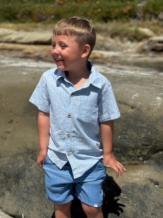 Sea Stripe Collared Short Sleeve Shirt