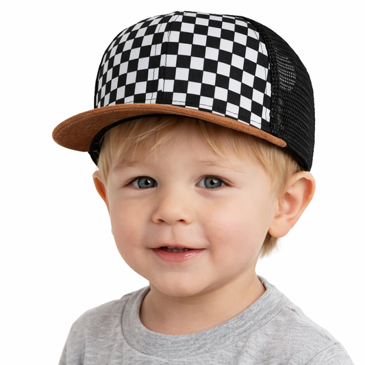 Checker Faux Flat Brim Trucker Hat