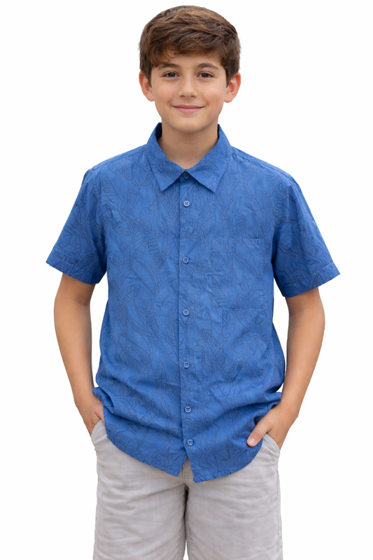 Blue Shirt with Palm Leafs