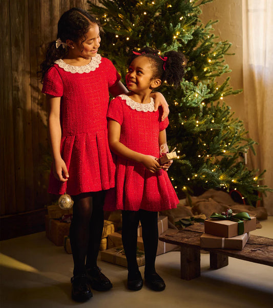 Houndstooth Sweater Dress with Faux Fur Pockets