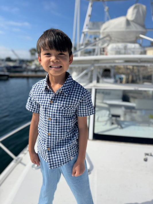 Navy White Gingham Woven Shirt