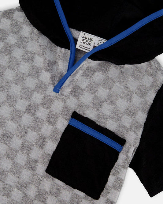 Gray Black Hooded Terry Short Set