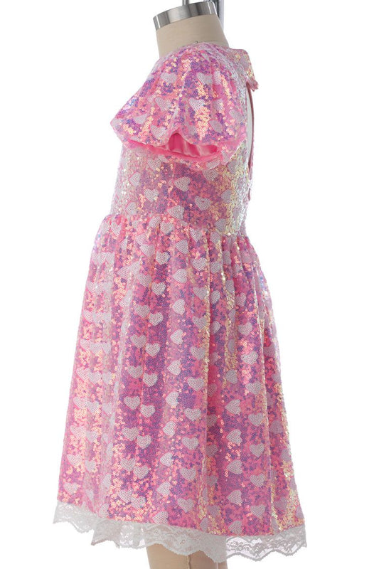 Kids Pink Sequin Heart Dress