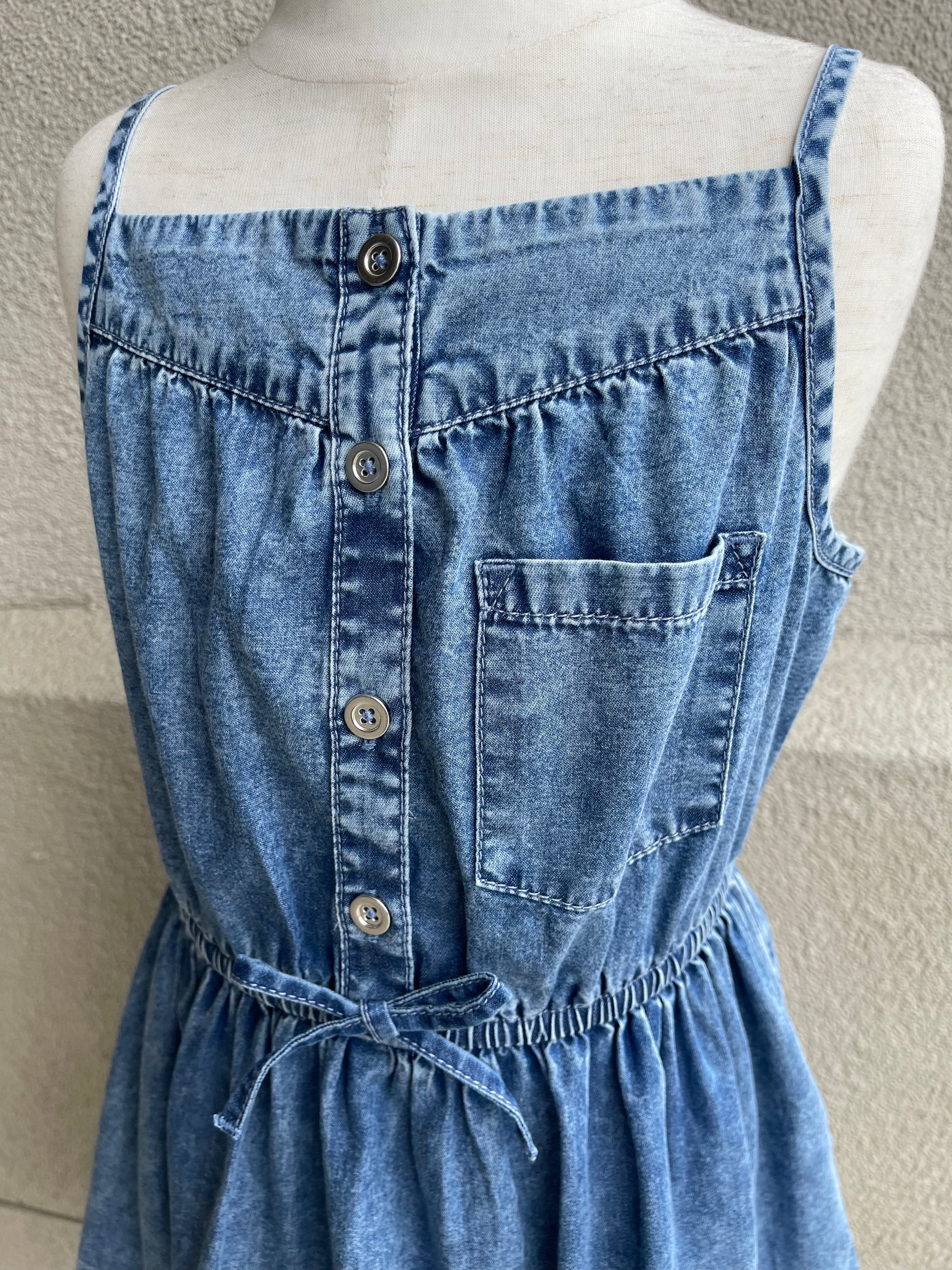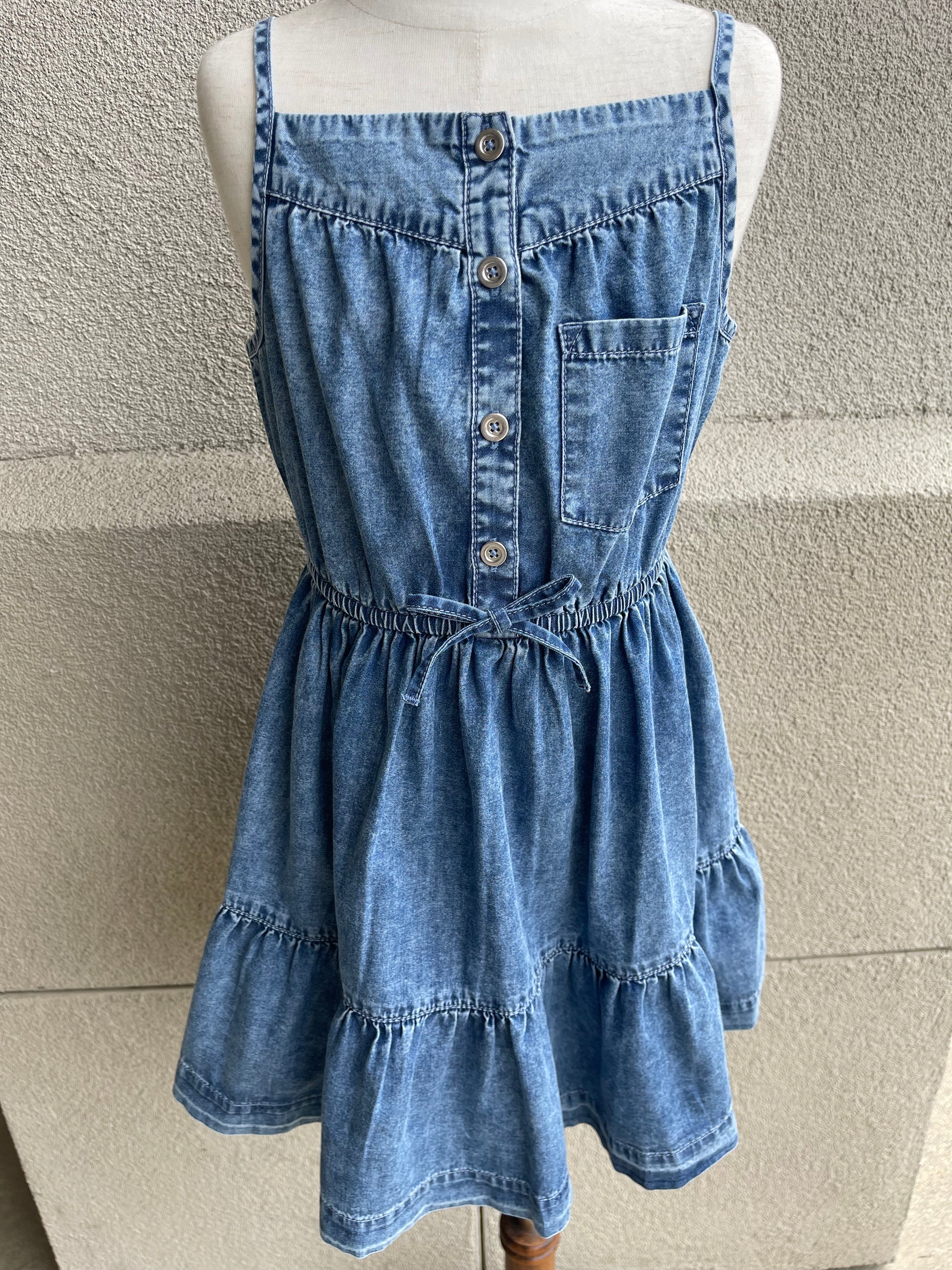 Adorable denim dress with thin straps. Very flattering! Pair with t-shirt underneath perfect for school