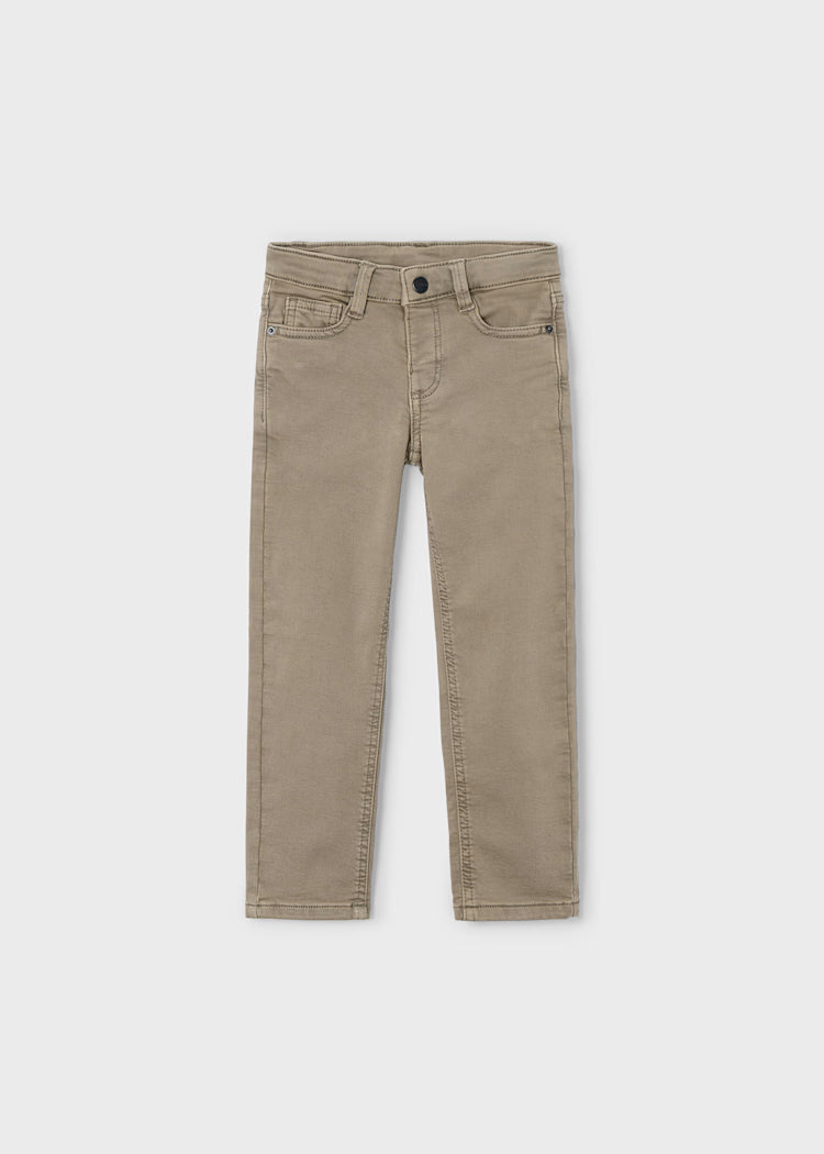 These classic straight-leg pants offer a regular fit designed for boys, combining style and practicality. They fasten securely with a zip and button, while the adjustable elastic waistband
