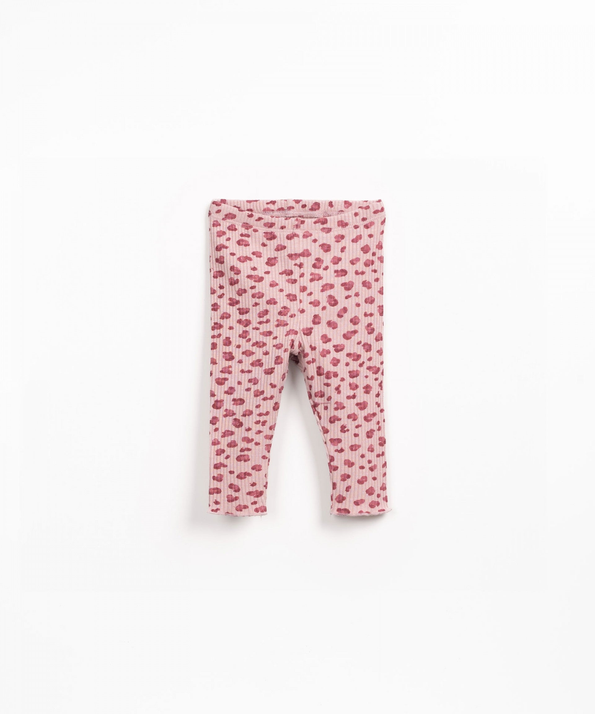 These leggings are made from organic cotton jersey, in Light Pink color. They are a model with an elastic waistband and a spotted print. This tunic is made from a blend of cotton, recycled cotton and organic cotton fabric, in Dark Pink color. It features long sleeves with elastic cuffs, round neckline, front opening with coconut buttons and gathering at the waist.