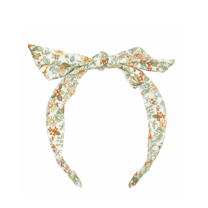 A beautiful headband made with our gorgeous bramble floral fabric, featuring a hand tied top knot, and designed to provide a comfortable fit for little heads.