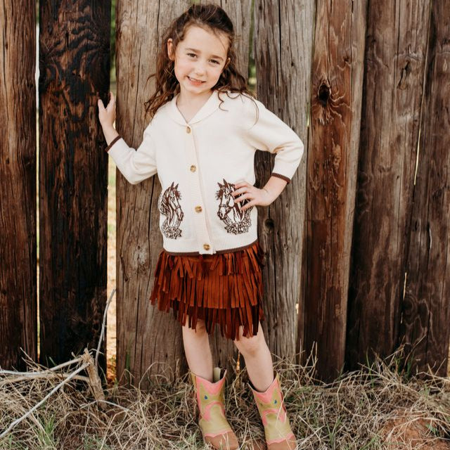 Keep your girl cozy and stylish this winter in our Horseshoe Sweater! Designed with durable fabric and stylish details, as it brings all the western flair with the girly twist.