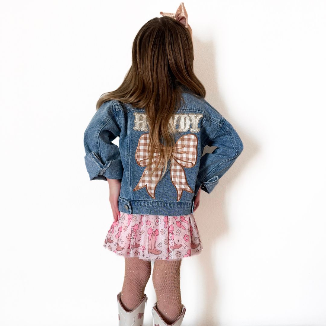 Howdy Gingham Bow Patch Denim Jacket