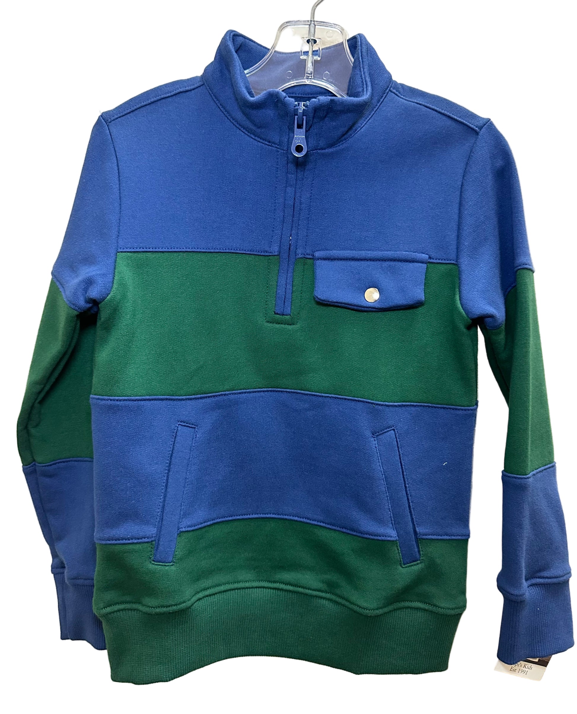 Max's color-blocked sweatshirt brings bold style and cozy comfort together. Featuring vibrant blue and green panels with a fun faux pocket detail and a front collar zipper, this 100% cotton piece is perfect for layering through the seasons. Soft, durable, and ready for everyday adventures—whether it's playtime, school, or casual outings.