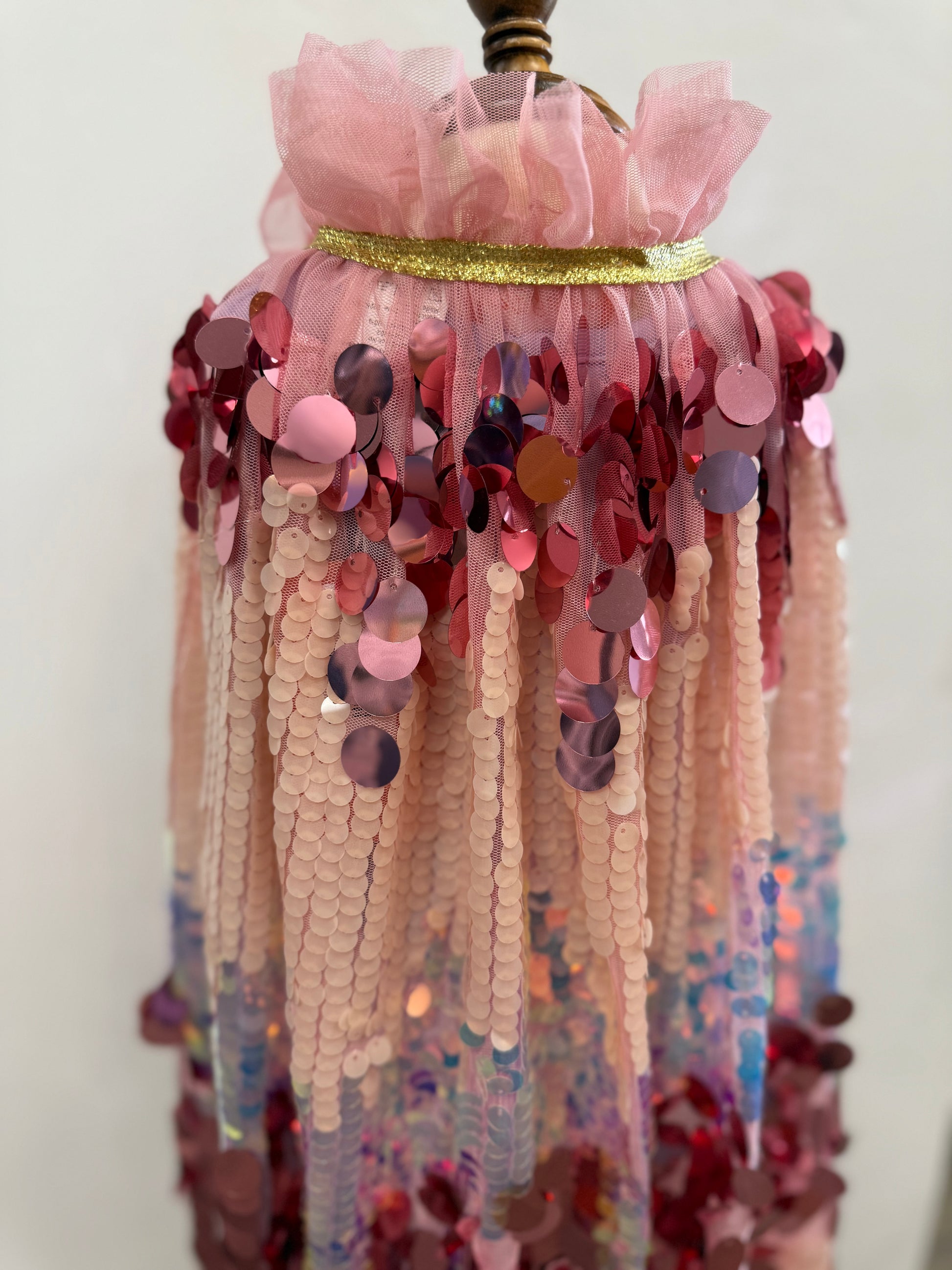 Add a touch of elegance to your birthday ensemble with this stunning mermaid pink sequin cape.