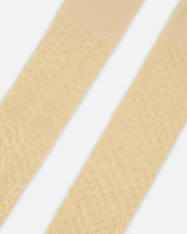 In a soft knit cotton/elastane/nylon blend, these stockings are perfect for layering under her favorite dresses, jumpers, and skirt sets. With a subtle dot texture, these tights feature a comfortable fit and a cozy feel with a bit of rib knit trim.